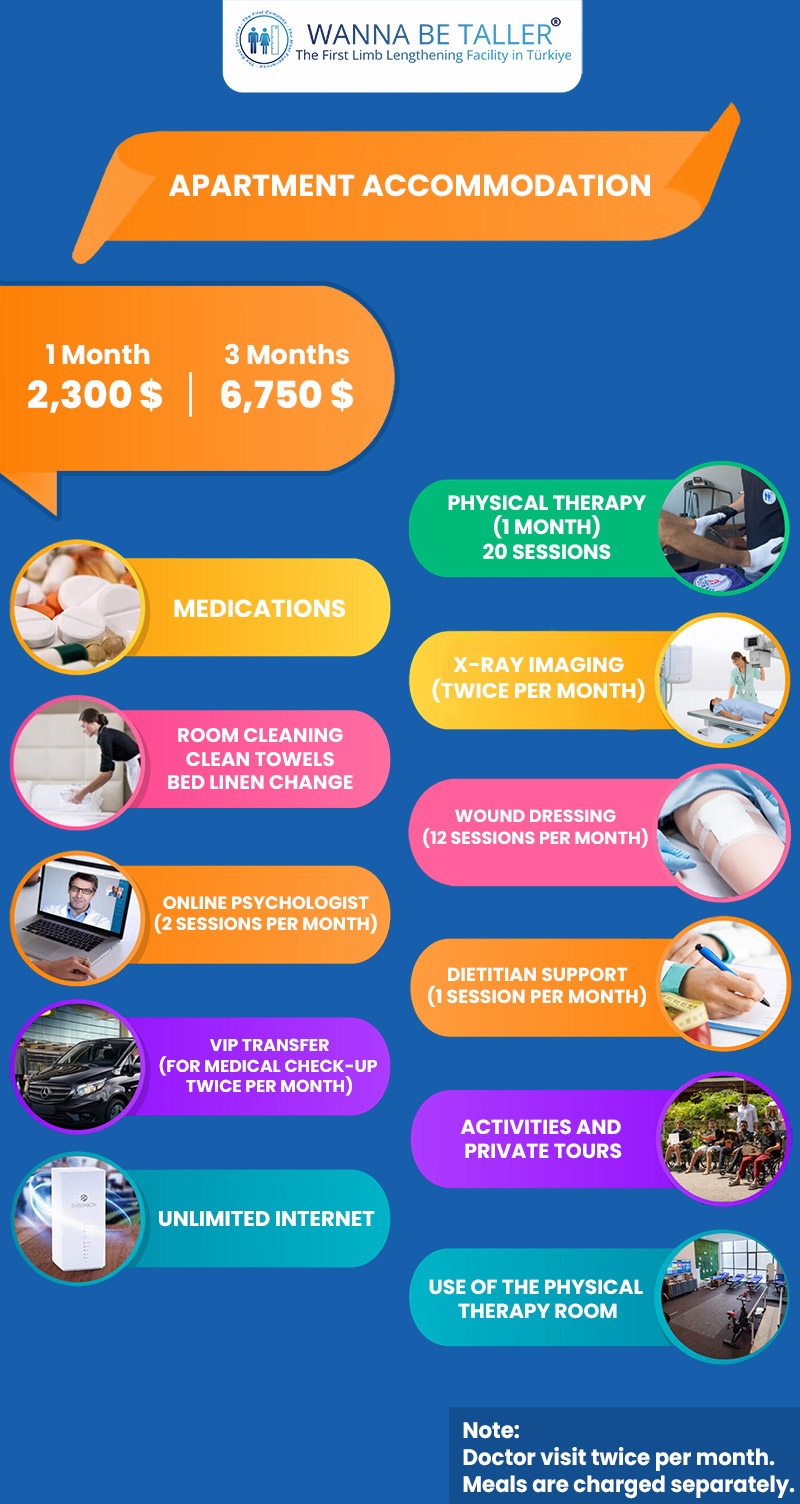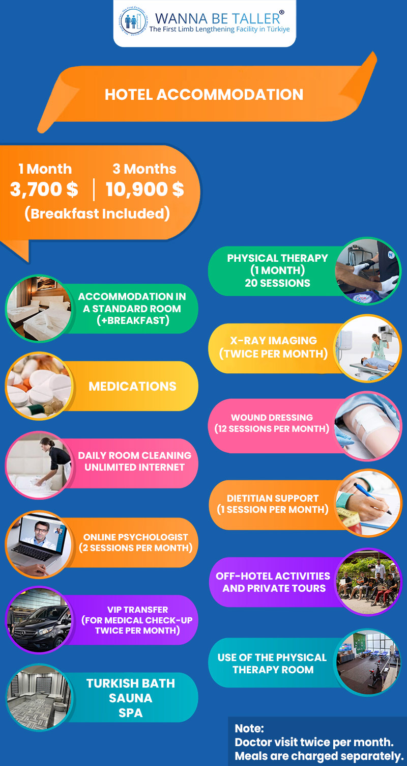Once you have received all the necessary information, you will be able to decide on the surgical method, the part of the limb to be operated on (femur or tibia for legs, forearm or humerus for arms), select a surgery date, and choose whether to stay in Turkey for the entire treatment or return home after a short hospital stay.